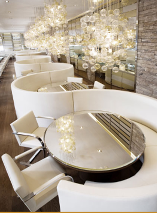 Upstairs in the Dining Room Ludwig Mies van der Rohe's iconic ‘Brno’ chairs have been customized with metallic fringing. Not for the faint of heart, the decor of this Restaurant "more is more" is typical signature Dolce and Gabbana. I wonder how Mies van der Rohe would feel about the metallic fringing on his chairs as his famous and most quoted saying is "less is more".
